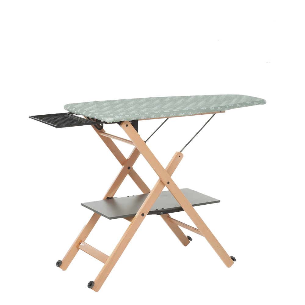 L’asse da stiro in legno Assai EVO di Foppapedretti, con struttura in legno massiccio, quando è chiuso occupa pochissimo spazio, sta in piedi da solo e si sposta facilmente grazie alle ruote antigraffio. I punti di forza sono: