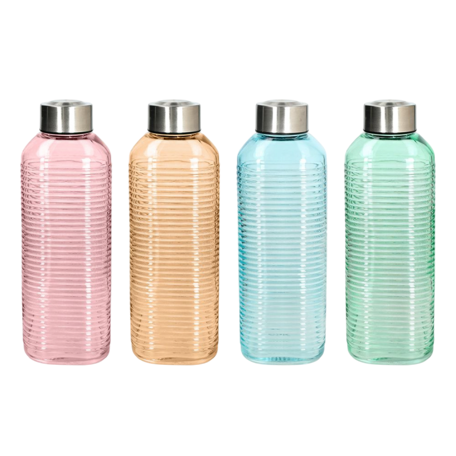 La bottiglia quadrata da 1 litro è realizzata in vetro con tappo in acciaio. Riduce, inoltre, l’utilizzo della plastica e aggiunge un tocco contemporaneo alla mise en place.