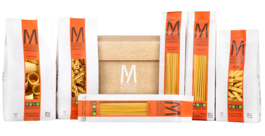 La Gift Box dal design rinnovato contiene 3 Kg misti della linea classica Pasta Mancini: