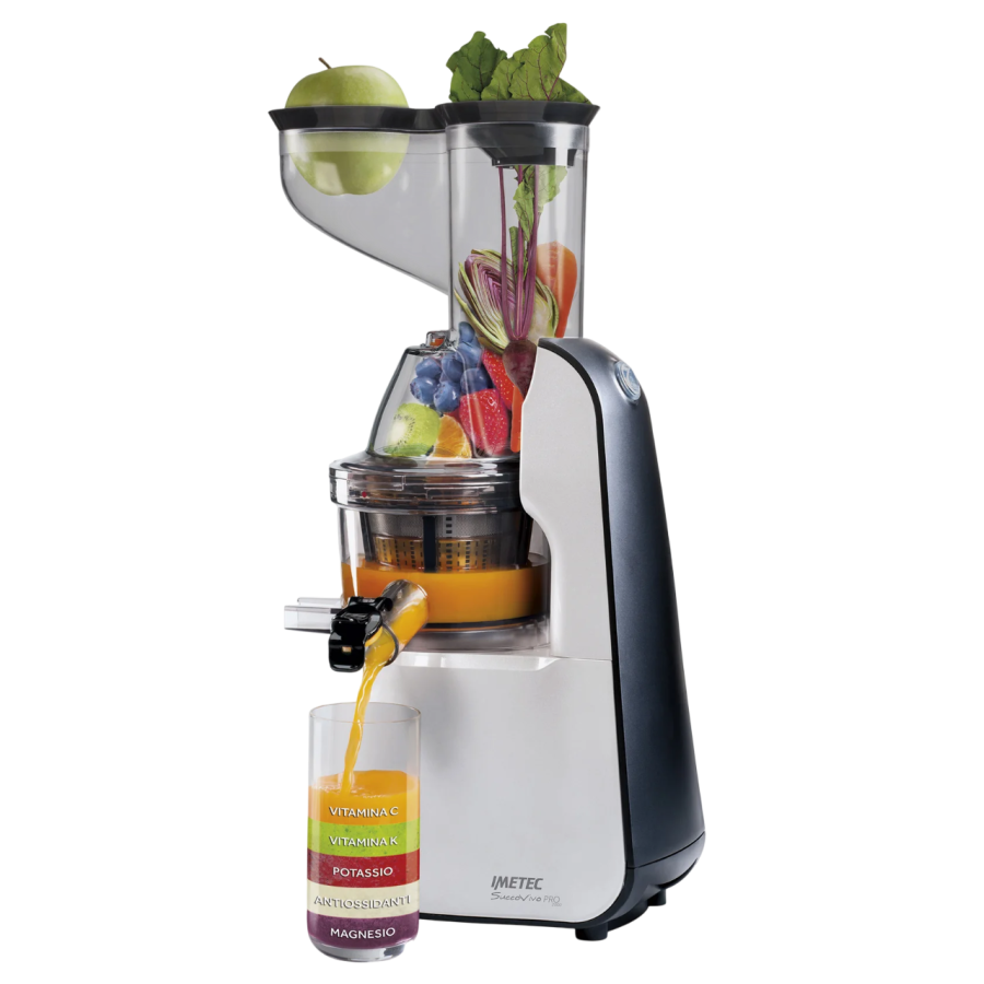 Imetec SuccoVivo Pro 2000 è l’estrattore di succo professionale a spremitura lenta a 48giri/min per preparare succhi naturali ricchi di vitamine, latte vegetale per intolleranti, gustose salse, vellutate fredde, gelati e granite fresche. La tecnologia Imetec garantisce prestazioni professionali