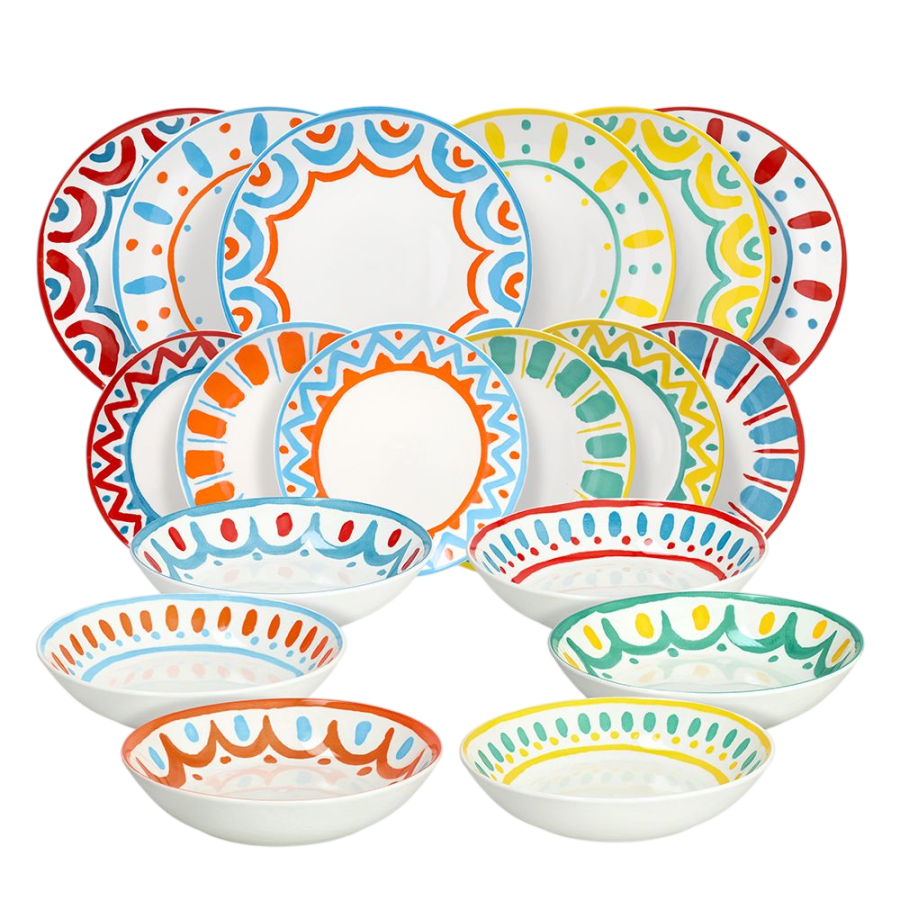 Il servizio piatti “Vietri” in porcellana da 18 pezzi è la scelta ideale per chi desidera una tavola colorata e vivace che profuma di estate e vacanze. Perfetto per 6 persone, il servizio piatti è caratterizato da motivi decorati ispirati alla tradizione mediterranea.