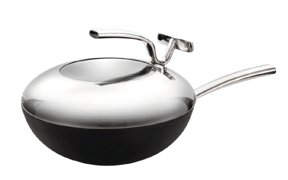 Il wok giusto per i cuochi più esigenti? Questo lussuoso wok ha il rivestimento antiaderente ruvido e grezzo che simula la pietra naturale e ne riproduce le caratteristiche in cottura; grazie alla sua forma particolare, aiuta a distribuire il calore in maniera uniforme e cuocere le pietanze alla perfezione, usando pochissimi grassi aggiunti. In più ha in dotazione un coperchio in vetro e acciaio inox dal design unico, con una pratica impugnatura che permette di appoggiarlo al piano di lavoro senza sgocciolare.